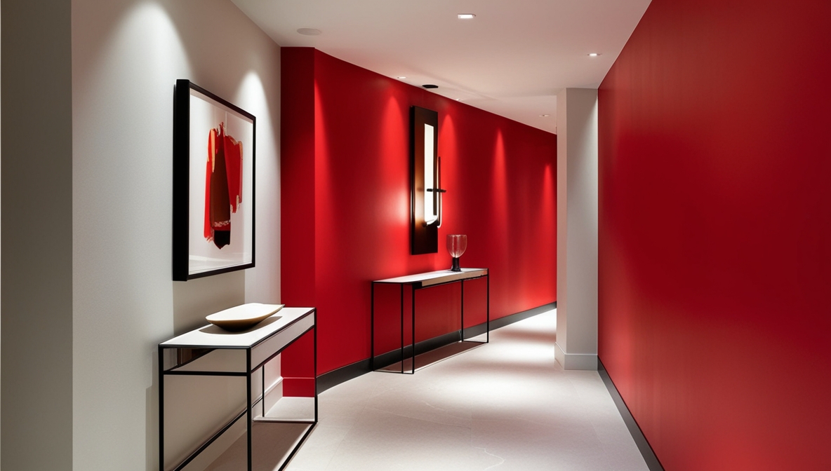 - Hallways & Passages: Narrow spaces come alive with accent colours, and red adds a memorable first impression.